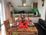Ausstattung: SAT TV, Internet W-LAN, DVD Player, CD Radio, Waschmaschine, Föhn, Bügeleisen, Bügelbrett, Wäscheständer, Kaffemaschine, Pad - Kaffeemaschine, Toaster, Mikrowelle, Wasserkocher, Spülmaschine, Herd, 4 Platten Cerankochfeld, Dunstabzugshaube und voll möbliert.
