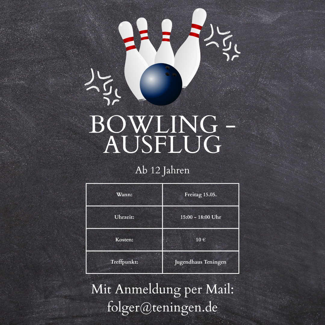 Das Kinder- und Jugendbüro Teningen veranstaltet am Freitag, den 15.05., einen Bowling-Ausflug. Das Angebot richtet sich an Jugendliche ab 12 Jahren.
